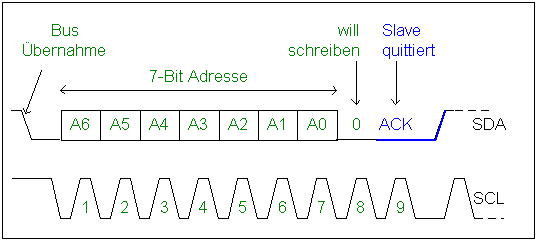 Leitungen (SCL & SDA) an. Nur wenn beide Leitungen High-Pegel haben