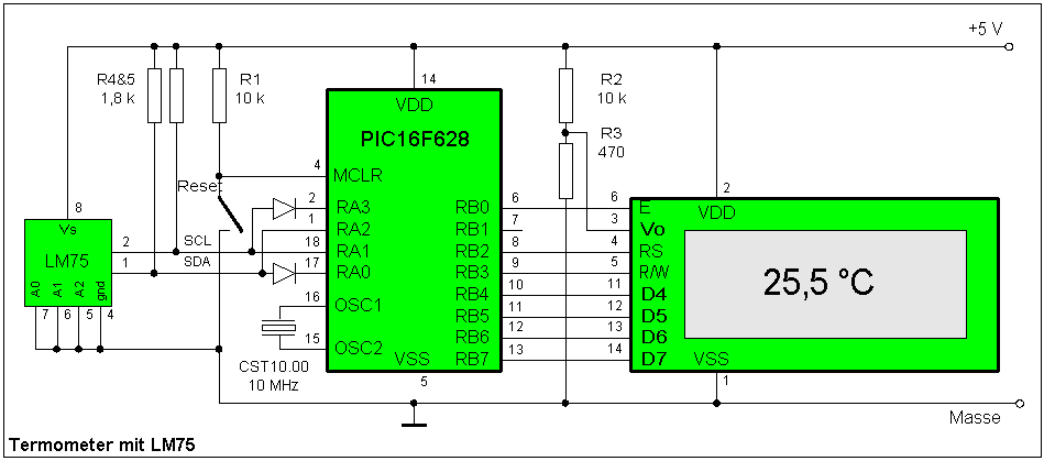 einen Temperatursensor vom Typ LM75 über I2C an einen 16F628