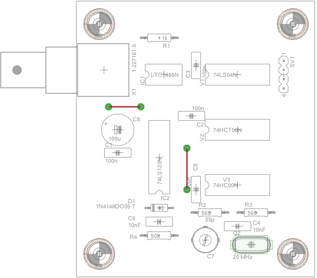 In vielen Laboren und wohl auch in einigen Bastlerlaboren gibt es einen zentral erzeugten, genauen Masterclock, mit dem alle Geräte synchronisiert werden. Das ist in der Regel ein hochgenauer 10-MHz-Takt, der via Koaxialkabel und BNC-Steckverbindern allen Geräten zur Verfügung gestellt wird. (Der Pegel ist typischerweise 10 dBm, was an 50 Ohm etwa 0,7 V entspricht.) Frühere Versionen meines Frequenzzählers hatten einen 10-MHz-Quarz als PIC-Taktquelle. Dadurch ließen sie sich recht leicht für die Speisung mit einem externen 10 MHz Referenztakt modifizieren. Inzwischen betreibe ich den Frequenzzähler aber mit 20 MHz. Die Lösung dieses Problems ist die Erzeugung eines 20-MHz-Taktes aus dem externen 10-MHz-Referenztakt. Dafür verwendet man normalerweise PLL-Schaltungen, aber ich wollte es einfach halten. (Mit einem NB3N502 wäre eine PLL wohl noch einfacher geworden.) Downloads |