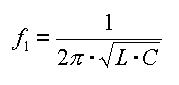 | Mit einem Komparator LM311, einer 68-µH-Spule und einem 680-pF-Kondensator ist ein LC-Oszillator aufgebaut. Seine Schwingfrequenz wird mit dem Timer des PIC16F84 gemessen. Sie entspricht dabei der nebenstehenden Formel und hängt also von der Größe des Kondensators C und der Spule L ab. | ![]() |
