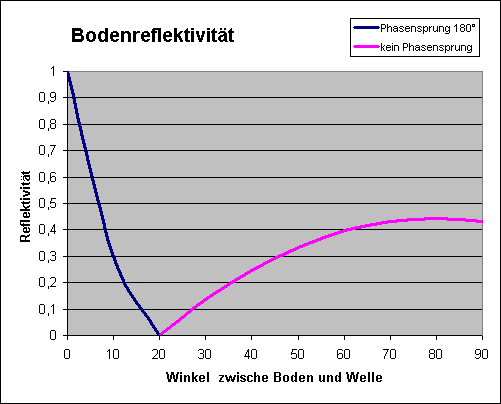 Der Einfluss der Bodenreflektion ist deshalb von so großer Bedeutung, da bei der Reflektion ein Phasensprung von 180° auftreten kann. Das bedeutet, dass das reflektierte Signal das das genaue Gegenstück zum direkten Sendesignal ist. Treffen in der Empfängerantenne beide Signale zusammen, dann können sie sich nun zum großen Teil auslöschen.