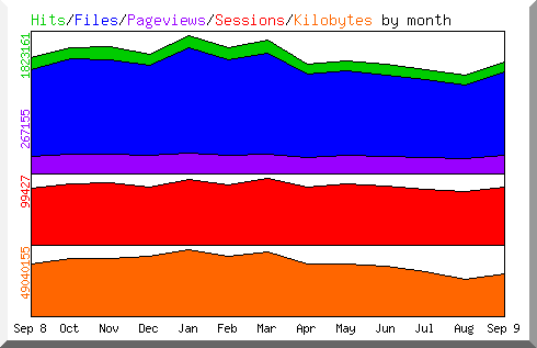 Month Hits Files Pageviews Sessions KBytes sent