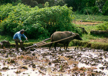 Aussaat vorzubereiten. Der Wasserbüffel ist dazu das übliche