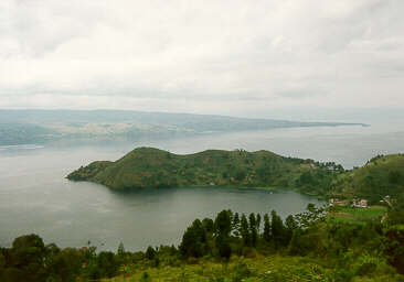 Auf Sumatra liegt auf halbem Weg zwischen Medan und Padang in einer Höhe von 900 Metern der Toba-See. Er soll der Überrest eines vor 75 000 Jahren explodierten und anschließend eingestürzten Vulkans sein.Übrig blieb die 100km lange Toba-Caldera, sie sich mit Wasser füllte. Im See liegt die verhältnismäßig große Insel "Pulao Samosir". Ein Ort an dem sich relativ viele Aussteiger befinden. Traveller, die in dieser schönen Umgebung hängengeblieben sind und hier einheirateten. Wenn man sich hier umschaut kann man sie verstehen. |