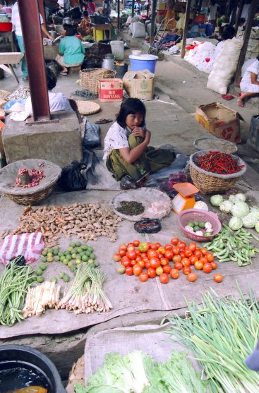 Kinder müssen oft mitarbeiten um den Familienunterhalt zu sicher. Beispielsweise beim Verkauf des Gemüses auf dem Markt. |