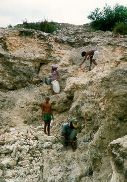 Einwohner sammeln den Schwefel und verkaufen ihn zum Lebensunterhalt. Wohlgemerkt ohne besondere Schutzmaßnahmen. |