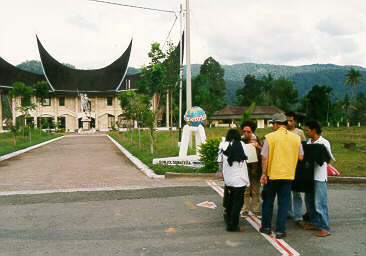 | Wer schon immer mal wissen wollte, wie der Äquator aussieht: er ist weiß mit einer roten Linie. In Bojol (West-Sumatra) kann man den Äquator zu fuß überqueren. | ![]() |