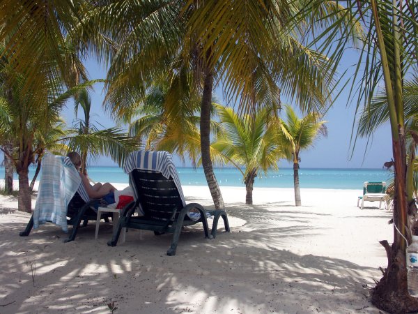 Herrliches Wetter, weißer Strand ein paar "eigene" Palmen und vor