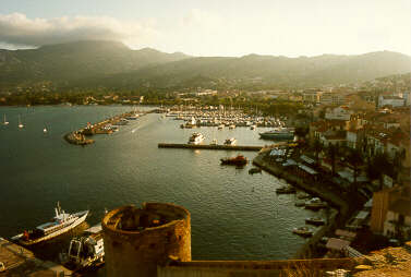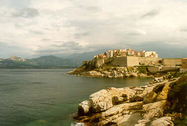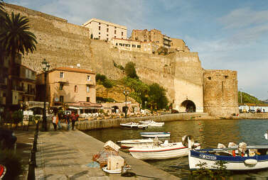 Die genuesische Zitadelle von Calvi liegt mit ihrer mächtigen Bastion auf einer Landzunge neben dem Hafen. Von dieser vorgeschobenen Position aus hatte man früher die beiden benachbarten Buchten unter Kontrolle. |