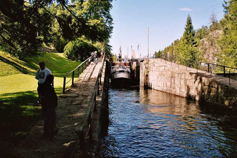 An der Südküste, westlich von Oslo, liegt Telemark. Durch diese Gebiet fuhr ich entlang des Telemarkkanals nach Nordwesten. Der alte Kanal war füher von großer wirtschaftlicher Bedeutung. Heute ist er eine Touristenatraktion. |