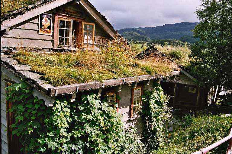 In Norwegen baut man mit Holz! Und das das ist keine Frage des Standes oder des Geldes, sondern des Prinzips. Selbst in modernen Zweckbauten (wie dem neuen Flughafenterminal in Oslo) versucht man mit allen Mitteln Stahl und Stein durch Holz zu ersetzen. Bewachsene Dächer sind auch nicht ungewöhnlich. Auf einer Schicht Gummi und Birkenrinde liegen Steinplatten. Darauf wiederum wachsen Moos und Gras. |