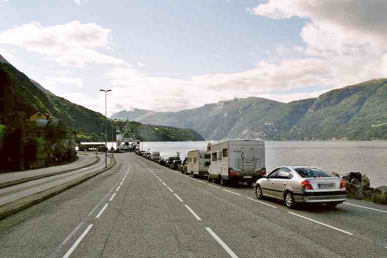 Was in Deutschland immer noch etwas nicht ganz alltäglich ist, ist in Norwegen so normal wie eine Brücke. Hunderte Fähren halten das Straßennetz zusammen. Meist wartet man nicht länger als 15..25 Minuten auf die nächste Fähre, und die geringe Dichte des Straßenverkehrs sorgt dafür, dass man auch wirklich mit der nächsten Fähre mitkommt. Die Fährkosten sind erträglich. Ab 6 Meter Länge zahlt man mit dem Wohnmobil drauf. Wer mit einem 6-Meter-Wohnmobil auskommt, spart bei einem dutzend Fährüberfahrten schon einiges an Geld. |