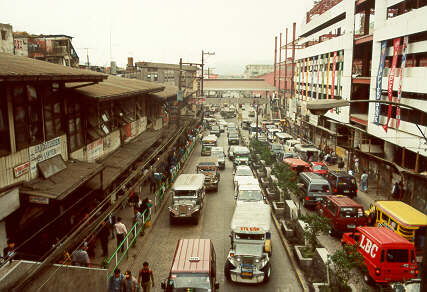 der Hauptverkehrszeit. Das Straßenbild wird von Jeepneys und Vans