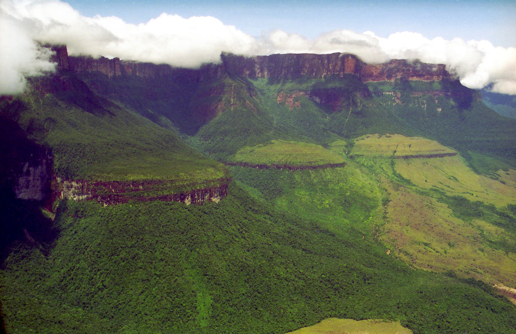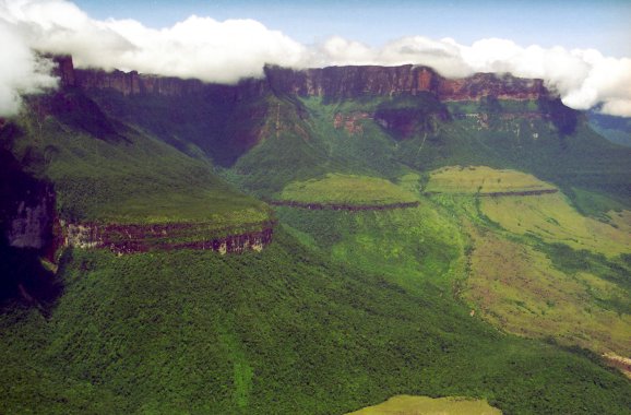 | Auf diesem Bild kann man die riesigen Schüttkegel erkennen, die die Tafelberge umgeben. | ![]() |