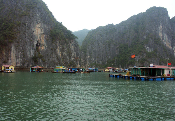 geworden. Sie haben schwimmende Dörfer errichtet. Die einzelnen Häuser schwimmen mit Hilfe von Plastikfässern. Unterhalb der Häuser befinden sich Käfige für die Fischzucht. |