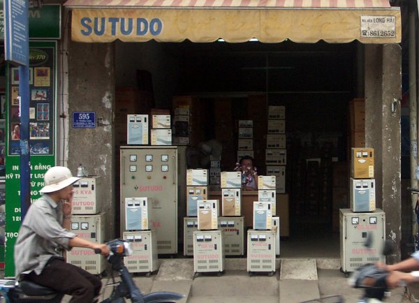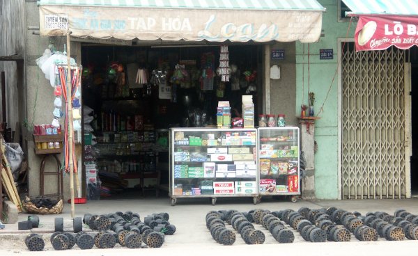 Das kann man auch heute noch z.B. in der Altstadt von Hanoi beobachten. Generell gilt: Supermärkte sind unbekannt. Jeder Händler ist spezialisiert. Hier gibt es z.B. alle möglichen Arten an Metallprofilen. Man kann auch mit Sicherheit davon ausgehen, dass in der näheren Umgebung weitere Metallhändler angesiedelt sind. |