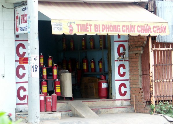 Hier gibt es alle Sorten von Feuerlöschern, und sonst