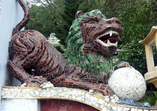 Blümchenmustern und Zwiebelmuster auch mal Teile einer Teetasse. Diese verspielten Mosaike zieren auch durchaus ernsthafte Gebäude wie z.B. Tempel. |