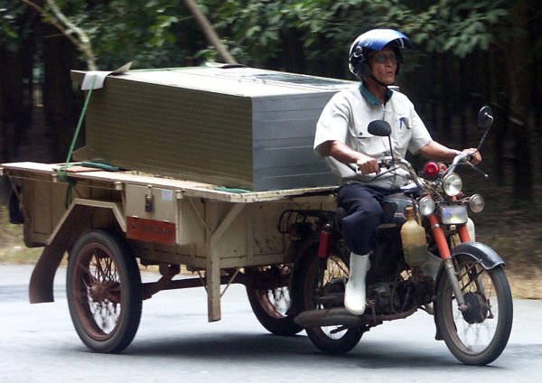 mehr als nur zum schnöden Personentransport. Als ich diesen Motorradfahrer sah, war ich noch etwas erstaunt über die merkwürdige Sozia auf dem Rücksitz. |