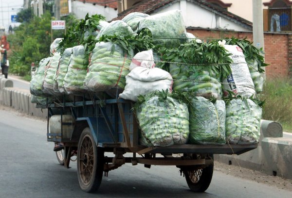 Gemüseernte mopedgezogen aus dem Dorf in die Stadt. |