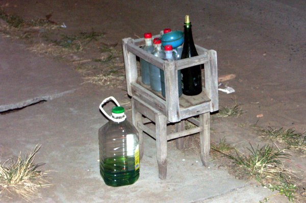 Moped-Tankstelle am Straßenrand. Es gibt aber in Vietnam auch ganz normale moderne Großtankstellen, wie wir sie aus Europa kennen, aber die Mopedfahrer bedienen sich lieber an der etwas preiswerteren Alternative. |