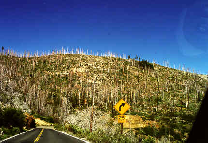 vollständig zerstört. Man hat aus der Geschichte gelernt, und betreibt jetzt eine Politik des kontrollierten Feuers. Systematisch wird nun in den einzelnen Regionen des Waldgebietes darauf geachtet, dass kleine Brände den Wald "aufräumen", und sich dadurch kein Großbrand mehr entwickeln kann. |