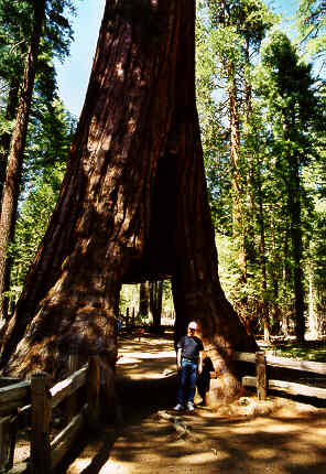 | Schon immer wurde die Natur dem Tourismus und dem Vergnügen geopfert. Man fand es lustig, in die Stämme der Mammutbäume Tore zu schneiden, durch die man dann mit einer Kutsche oder dem Auto hindurchfahren konnte. Den Bäumen tat das nicht besonders gut, aber dieses Exemplar steht noch. | ![]() |
